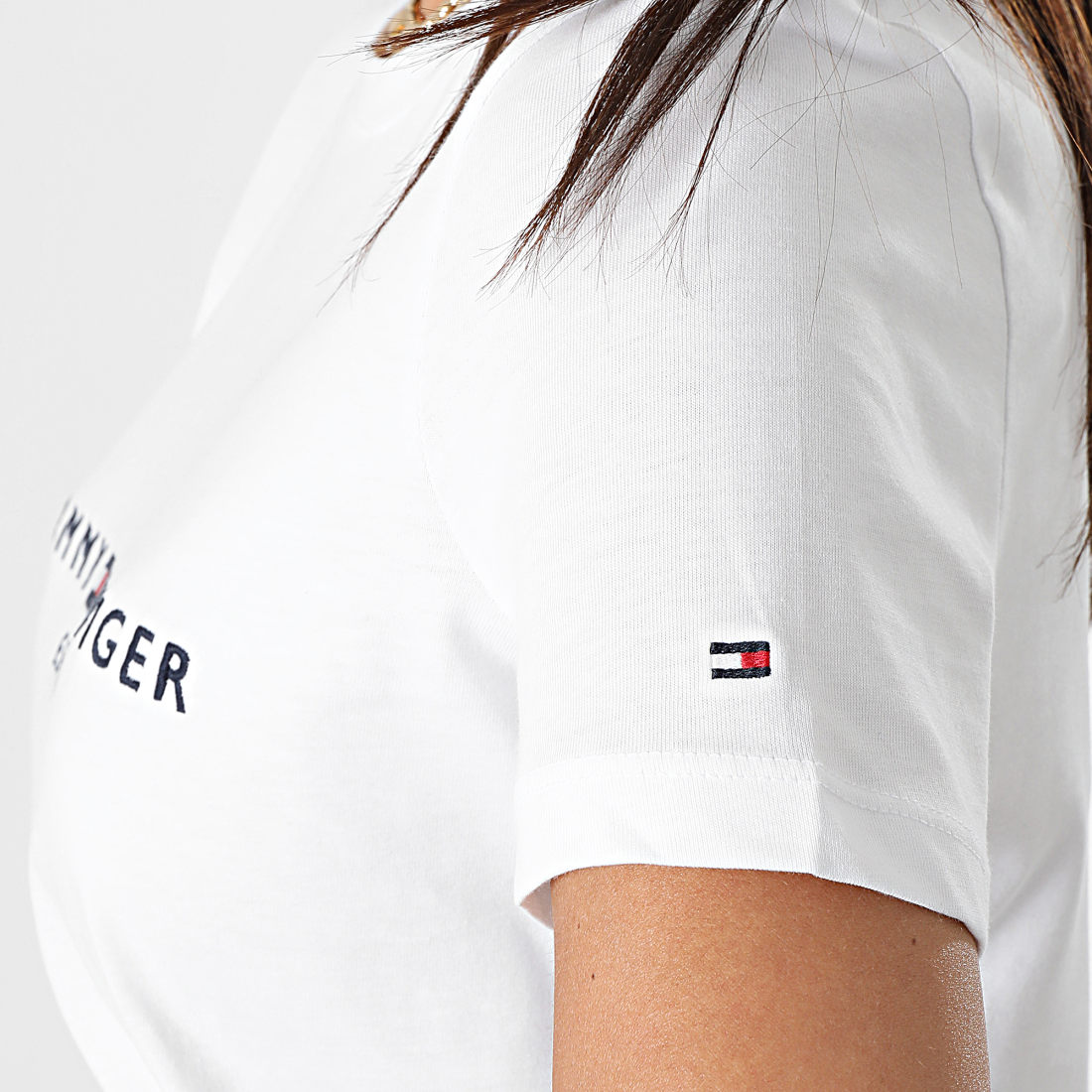 • Tee shirt en coton biologique brodé visuel Tommy Hilfiger à l’avant et brodé logo drapeau sur la manche
